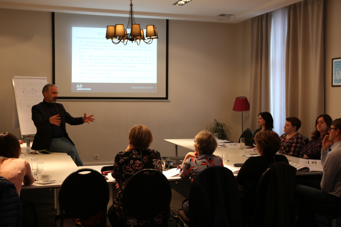Szkolenie prowadzone było przez eksperta w zakresie zatrudniania obcokrajowców Piotra Malinowskiego byłego Inspektora PIP.